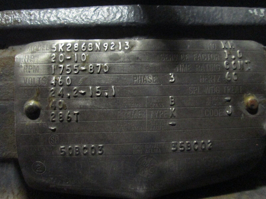 GE Motor 5K286BN9213 20/10HP 286T Frame 1755/870RPM 460V 24.2/15.1A Used