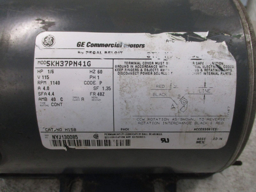 GE Motor 5KH37PN41G 1/6HP 115V 1200RPM 4.0A 60Hz 1PH Frame: 48Z Used_x000D_ GE Motor 5KH37PN41G 1/6HP 115V 1140RPM 4.0A 60Hz 1PH Frame: 48Z Used LOC 60H1-7