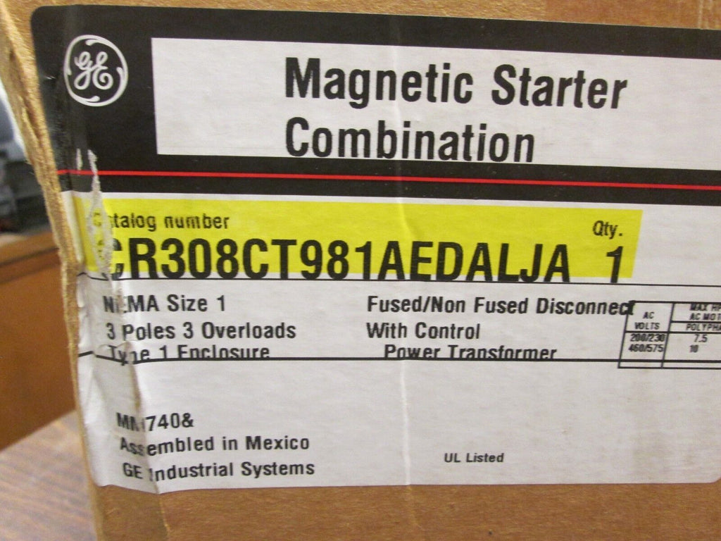 GE Non-Fusible Combination CR308CT981AEDALJA Size 1 3P Type 1 Encl. New Surplus