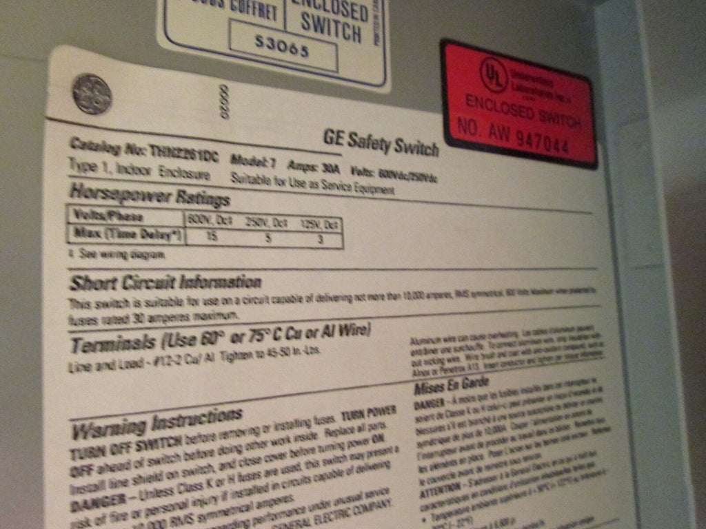 GE Non-fusible Safety Switch THN2261DC 30A 600V 2P 2W New Surplus_x000D_ Condition: New – Open boxCurrent Rating: 16-30 AMaximum Amperage: 30 AType: DisconnectorMPN: THN2261DCOperation Method: On/OffBrand: GEVoltage: 551-600 V GE Non-fusible Safety Switch THN2261DC 30A 600V 2P 2W New Surplus GE Non-fusible Safety Switch Part # THN2261DC 30A 600V 2P 2W New SurplusLOC: 13A5-1 GE Non-fusible Safety Switch Part # THN2261DC 30A 600V 2P 2W New Surplus LOC: 13A5-1