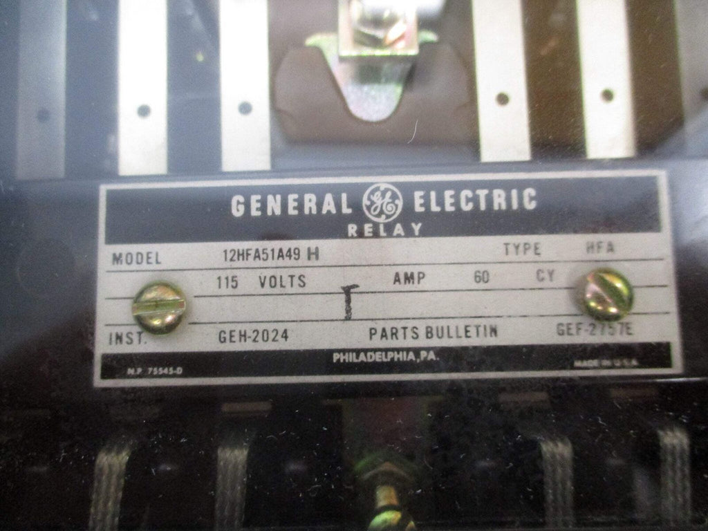 GE Relay 12HFA51A49 H 115V 60Hz Used GE Relay Part #: 12HFA51A49 H 115 V 60 Hz Used Loc: 59B2-28