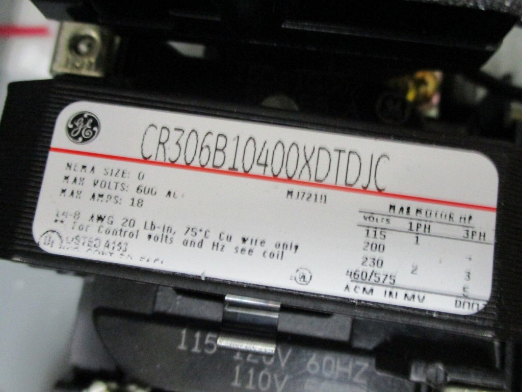 GE Size 0 Enclosed Starter CR306B10400XDTDJC 120V Coil 18A 600V New Surplus