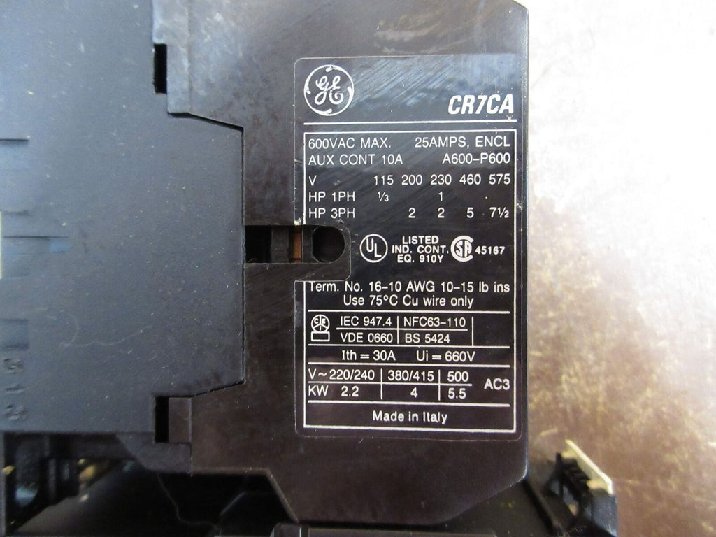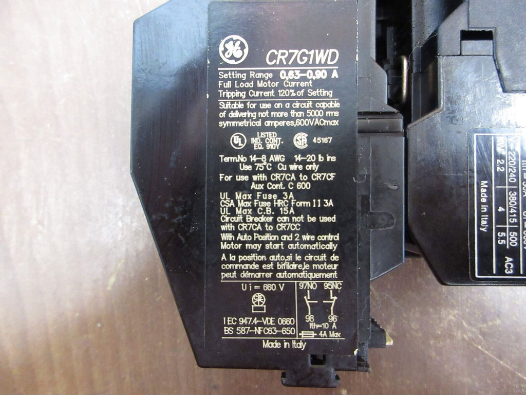 GE Starter CR7CA CR7G1WD 24V Coil Trip: 0.63-0.90A Used GE Sta...