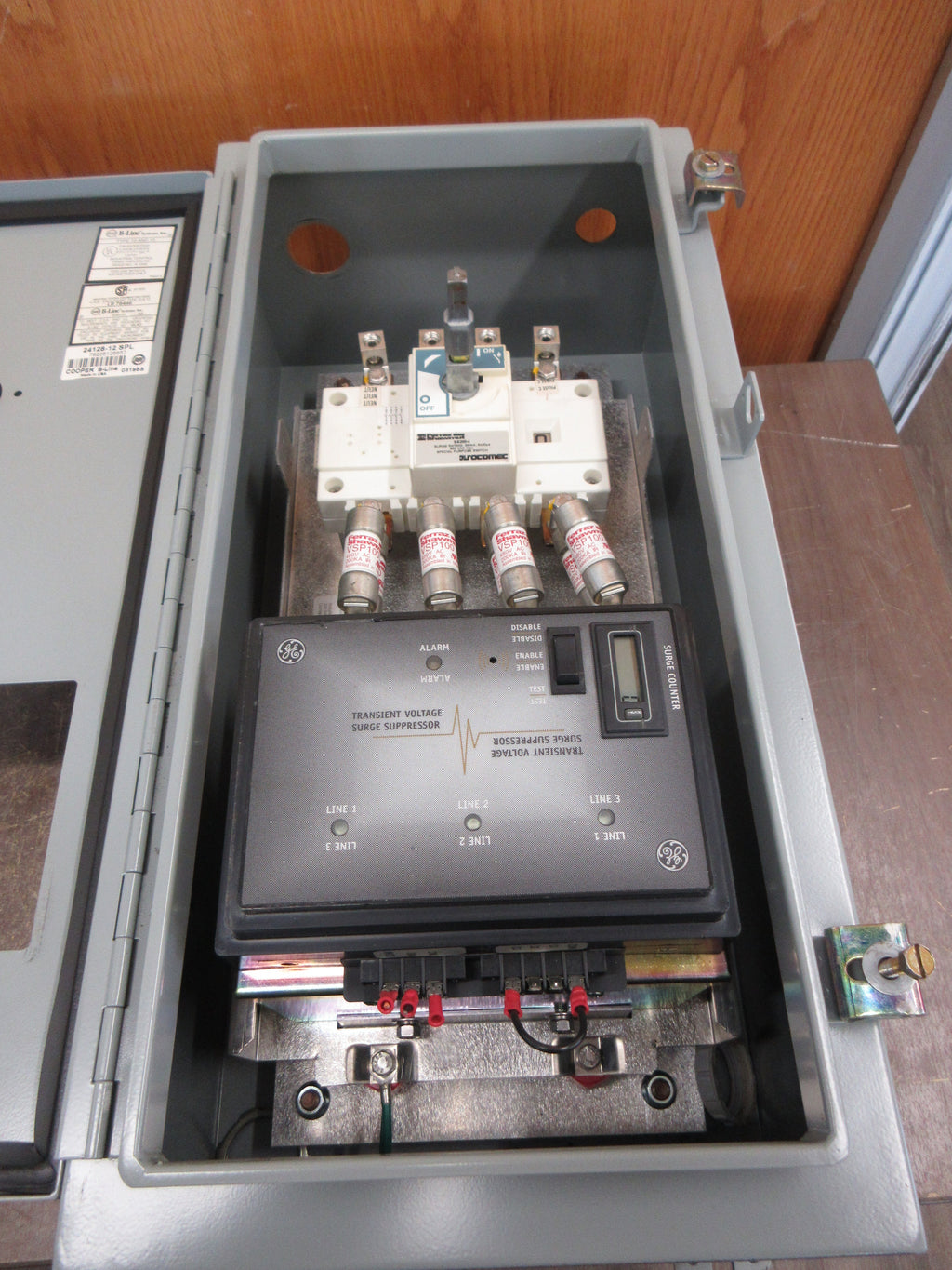 GE Surge Suppressor Part #: THE277Y200WMN1 277/480 V 3Ph 50/60 Hz Type 12/13 Enclosure SVR: 800VpK L-N, L-G, N-G Used Loc: AB11-8353 / AB24N2