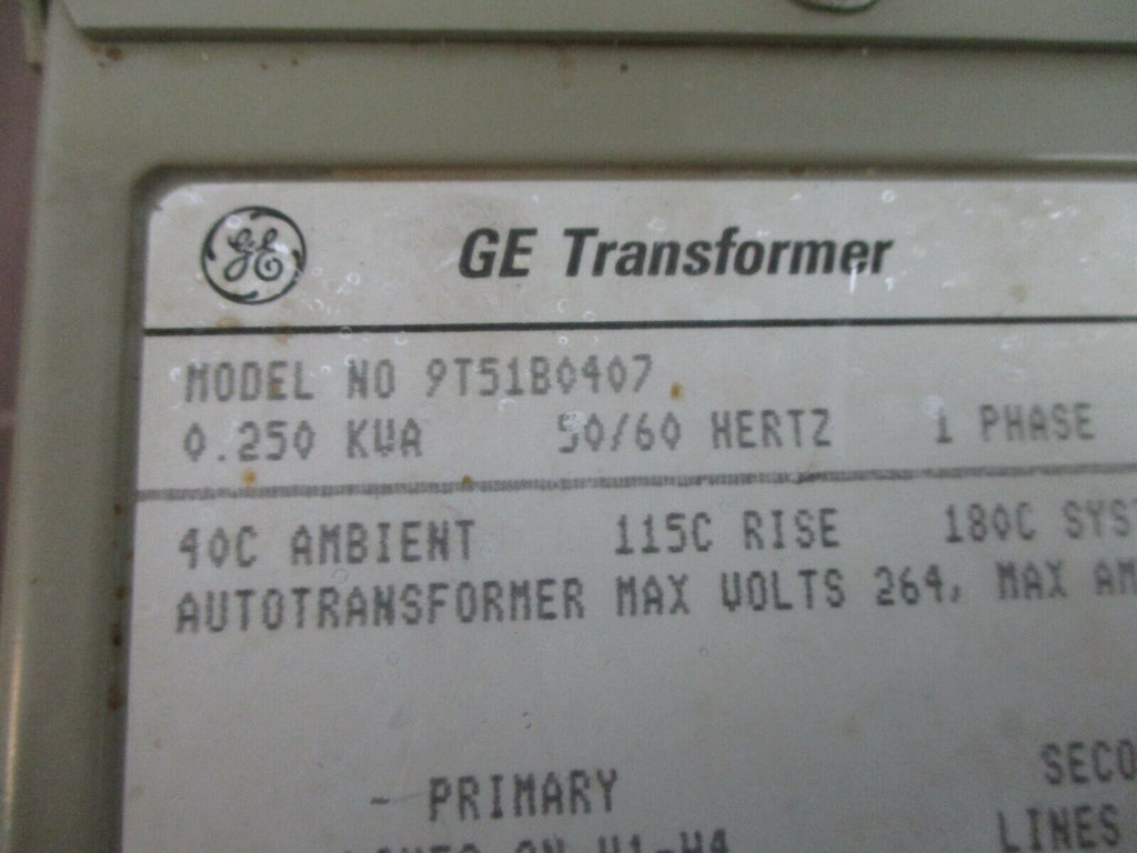GE Transformer 9T51B0407 0.250kVA Pri: 120/240V Sec: 12/24V 1Ph 50/60Hz Used