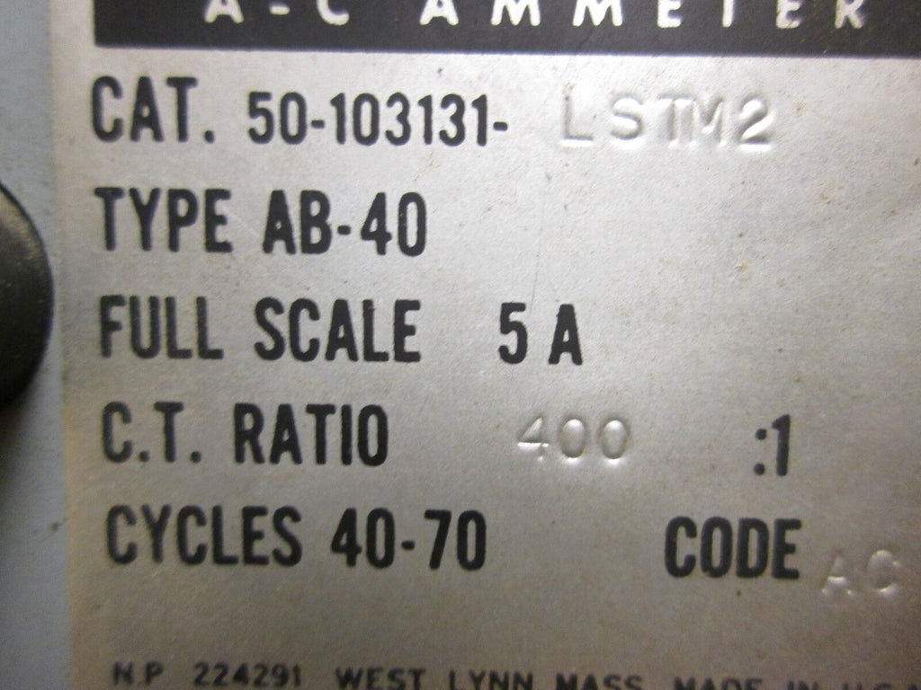 GE Type AB-40 AC Ammeter 50-103131-LSTM2 Range: 0-2000A CT Ratio: 400:1 Used