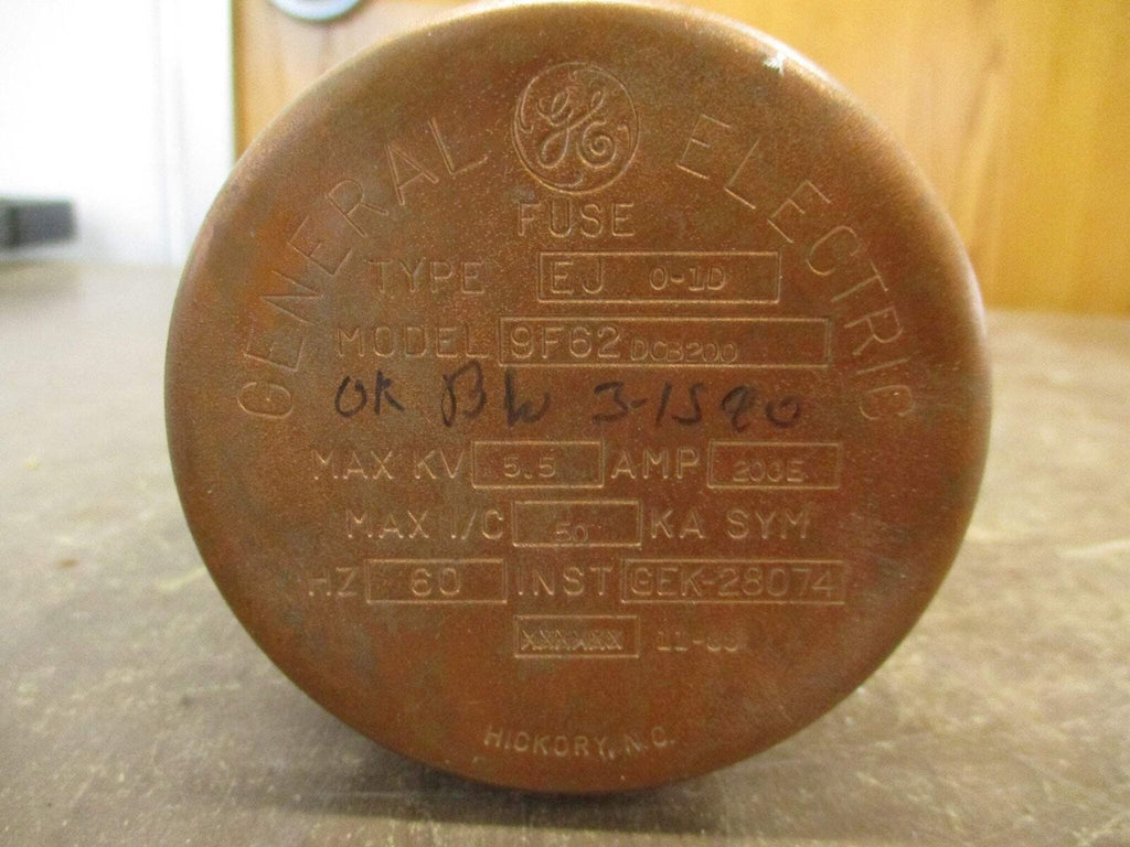 GE Type EJ-0-1D Fuse 9F62DCB200 5.5kV 200E 60Hz Used GE Type EJ-0-1D Fuse Part #: 9F62DCB200 5.5 kV 200 E 60 Hz Used Loc: FS1B6-14