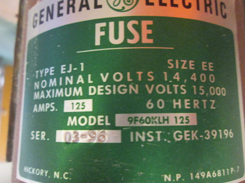 GE Type EJ-1 Fuse 9F60KLH125 125A 14.4KV Size EE 60Hz Used