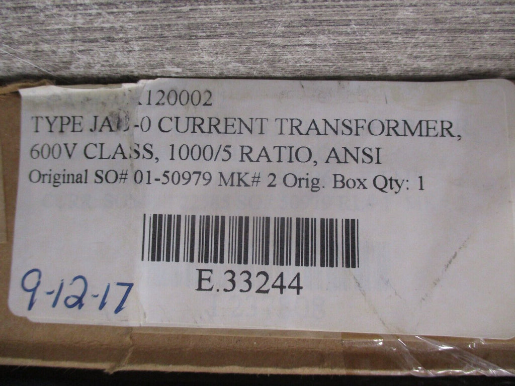 GE Type JAD-0C Current Transformer 750X120002 Ratio 1000:5A 600V 50-60Hz