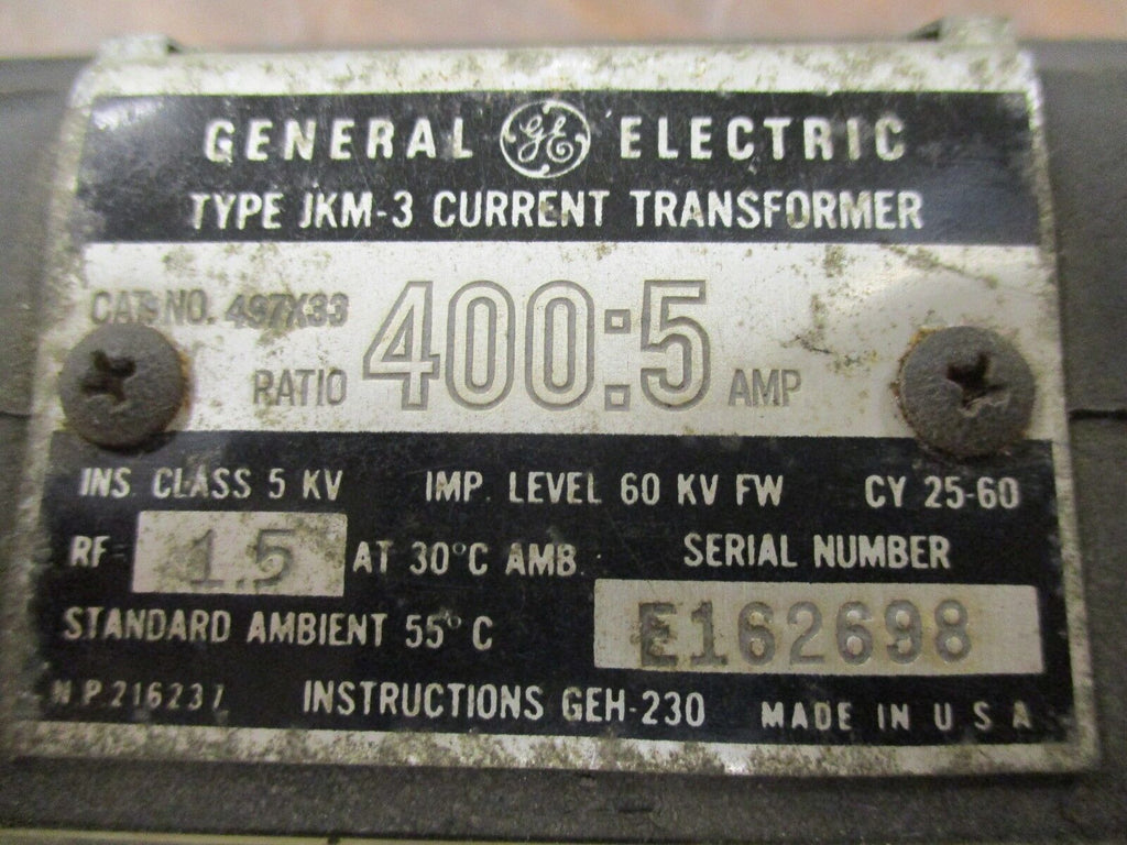GE Type JKM-3 Current Transformer 497X33 Ratio 400:5A Used