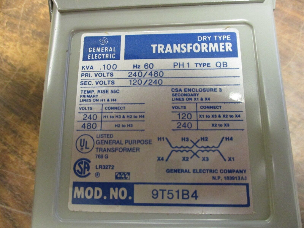 GE Type QB Transformer 9T51B4 0.100KVA Pri:240/480V Sec:120/240V 60Hz New