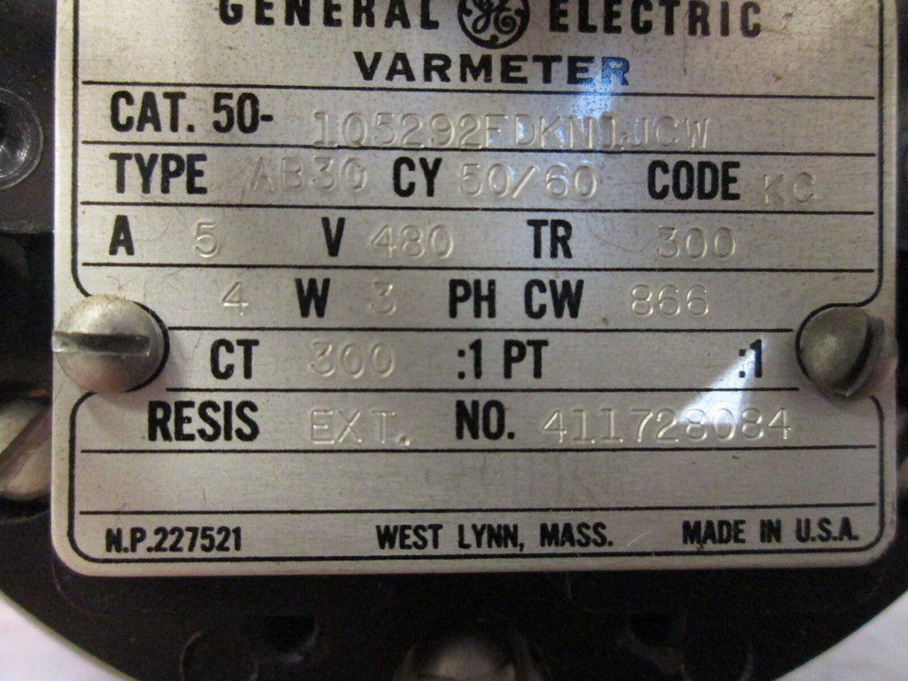 GE Varmeter 50-105292FDKN1JCW 480V 5A 50/60Hz Used Condition: ...