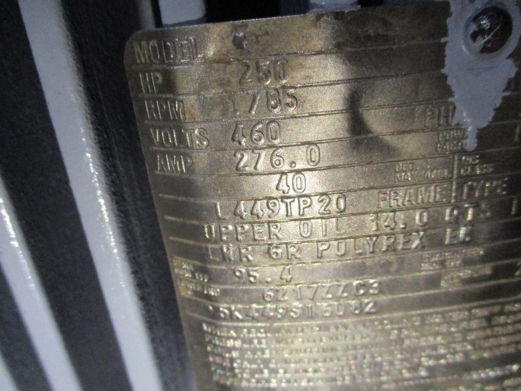 GE Vertical Mount Motor FR: L449TP20 250HP 1800RPM 460V 276.0A...