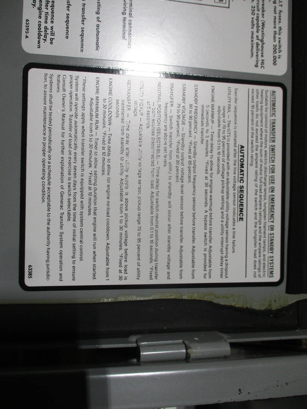 Generac GTS Automatic Transfer Switch 39A01317-W 105A 120/240V Used