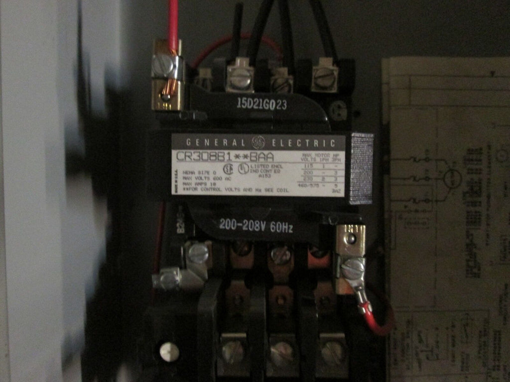 General Electric Size 0 Combination, CR308B1**BAA, Fusible, 600V, 18A Used Condition: UsedBrand: General ElectricMPN: CR308B1**BAA General Electric Size 0 Combination, CR308B1**BAA, Fusible, 600V, 18A Used General Electric Size 0 Combination Part # CR308B1**BAA 600 V 18 A Fusible Used Loc. 7G5-8 / 8D4 General Electric Size 0 Combination Part # CR308B1**BAA 600 V 18 A Fusible Uséd Loc. 7G5-8 / 8D4
