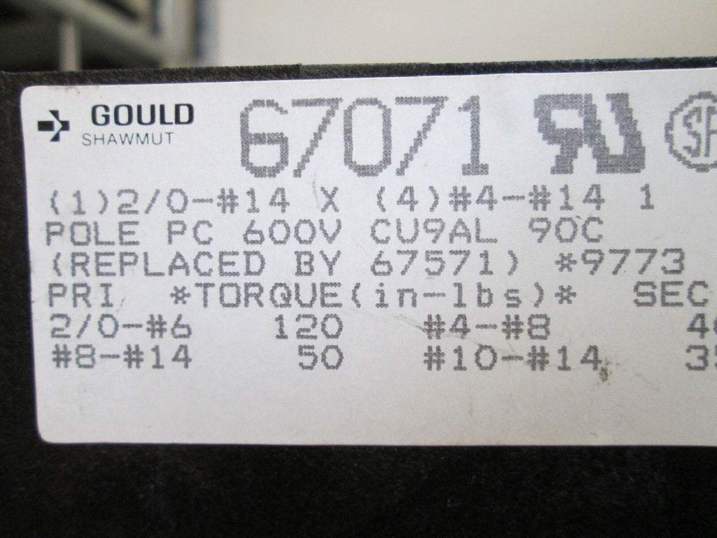 Gould/Ferraz Shawmut Power Distibution Block 67071 Line: (1) 2/0 - #14 Used