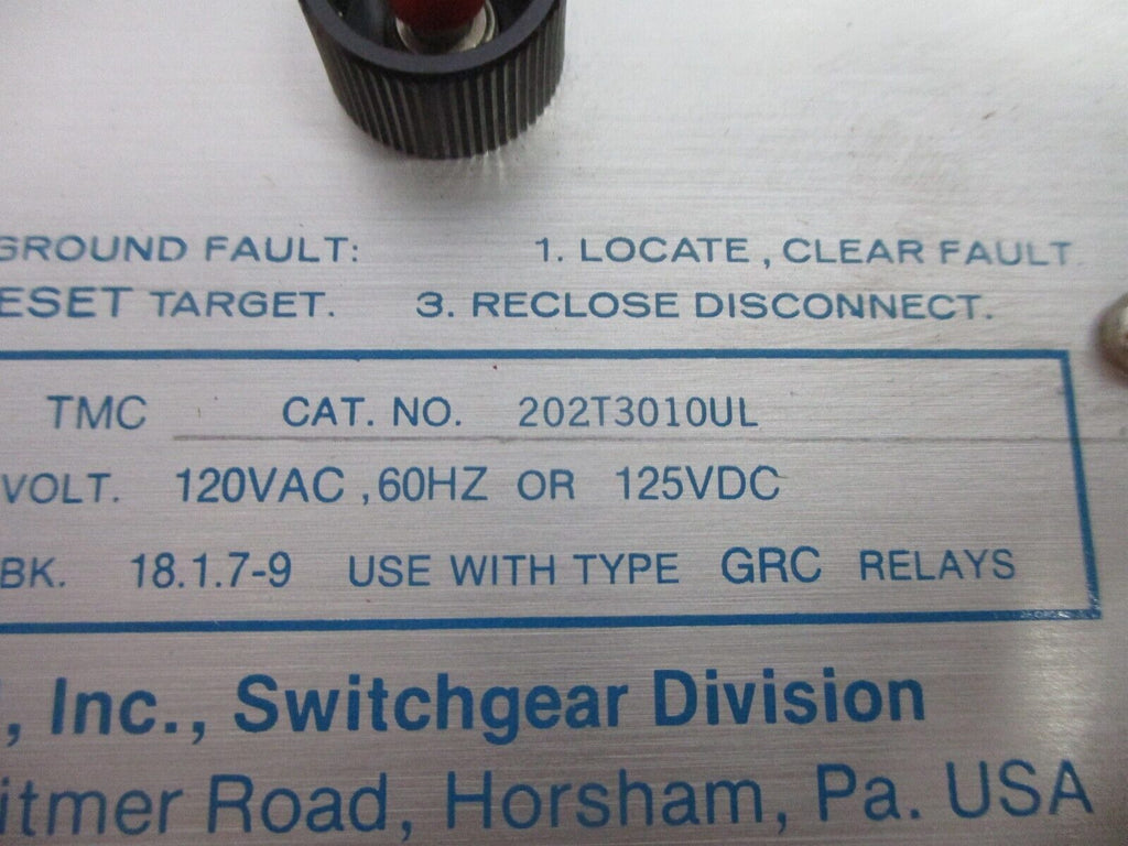 Gould Ground Shield Ground Fault Monitor Part #: 202T3010UL 120 VAC 60 Hz 125 VDC Use w/ Type GRC Relays Used Loc: AB11-4746 / CR4A6