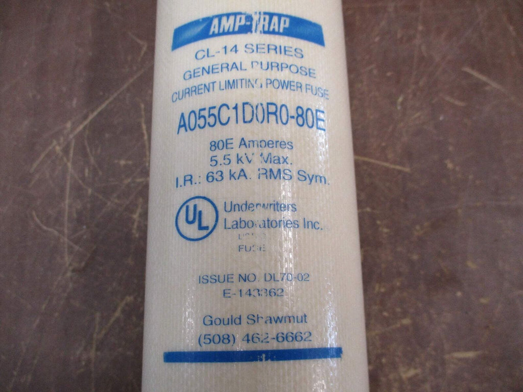 Gould Shawmut CL-14 Amp-Trap Fuse A055C1D0R0-80E 5.5kV 80E New Surplus Gould Shawmut CL-14 Amp-Trap Fuse Part #: A055C1D0R0-80E 5.5 kV 80 E New Surplus Loc: FS1B1-12
