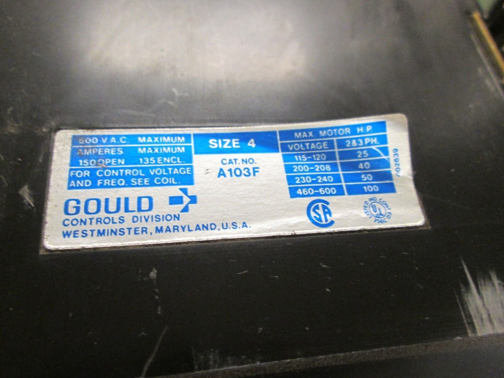 Gould Size 4 Contactor A103F 600V 135A 480V Coil Used