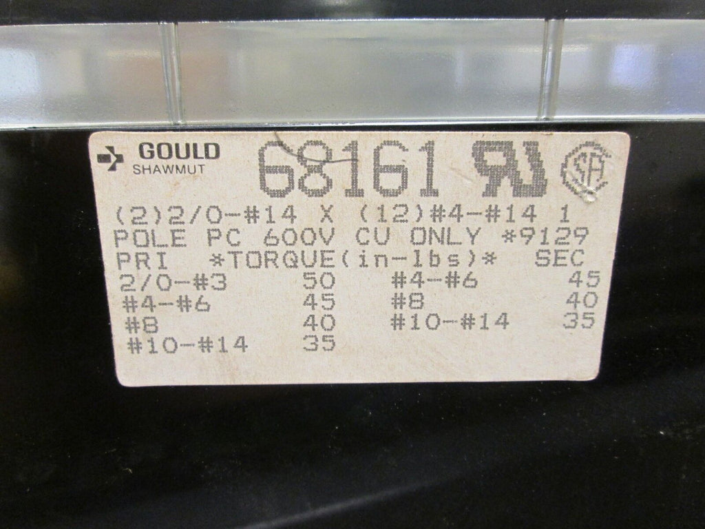 Gould Terminal Block 68161 Line (2) 2/0-#14 Load (12) #4-#14 1P Used