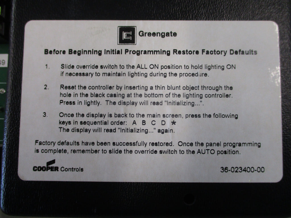 Greengate Litekeeper Lighting Control Panel 83-023400-03 V4.4.2 *No Key* Used