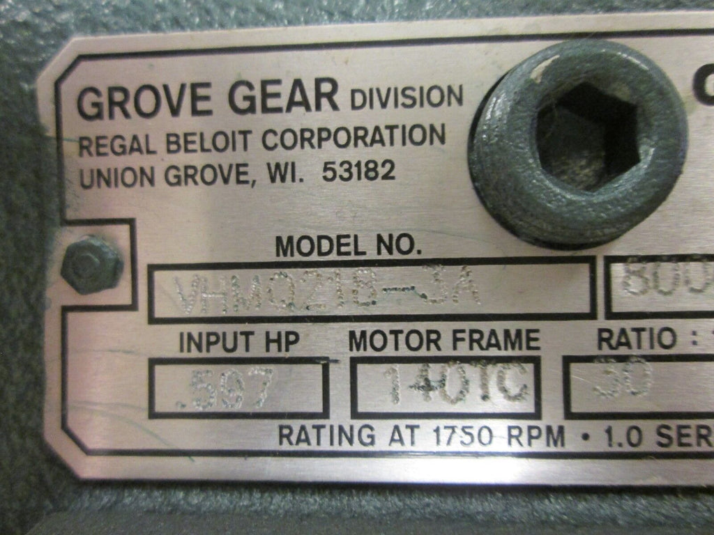 Grove Gear Flexaline Reducer VHMQ218-3A Ratio 30:1 0.597 HP IN New Surplus