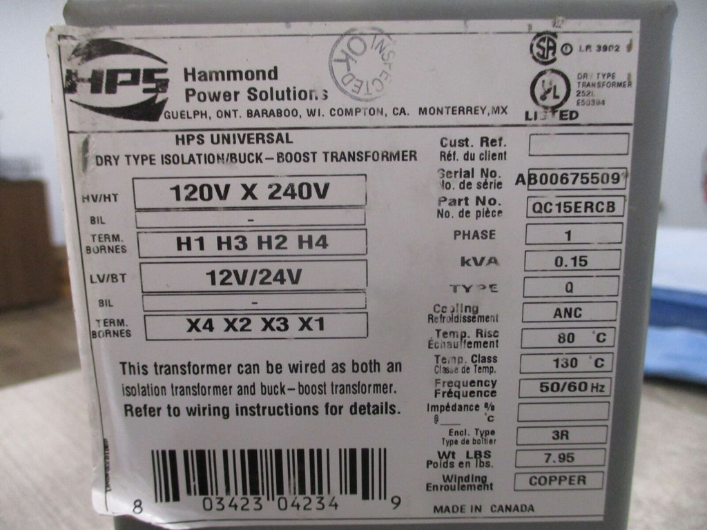 Hammond 3R Transformer QC15ERCB 0.15kVA Pri: 120/240V Sec:12/24V 1Ph 50/60Hz Use