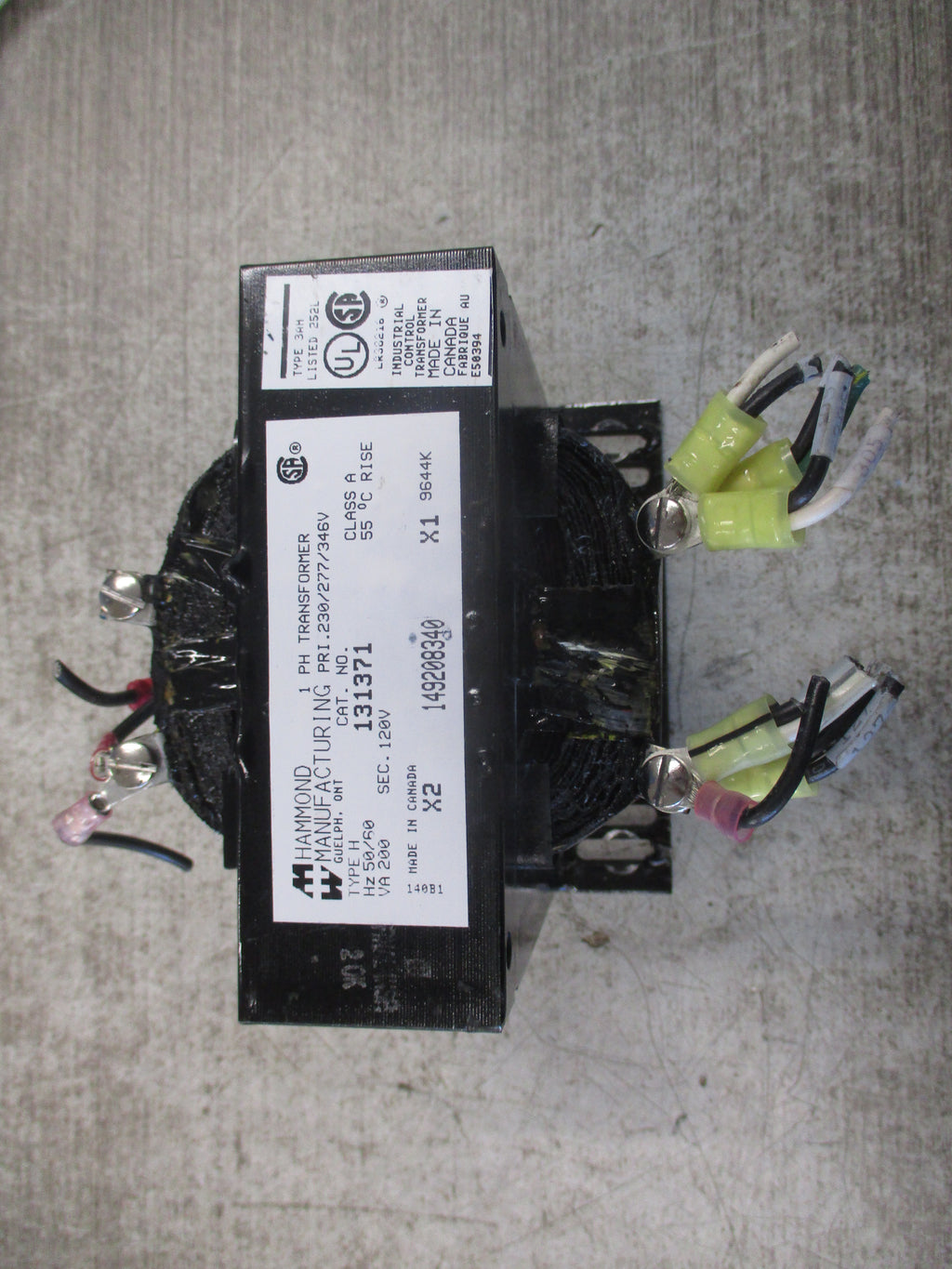 Hammond Transformer 131371 200VA Pri: 230/277/346V Sec: 120V 1Ph 50/60Hz Used