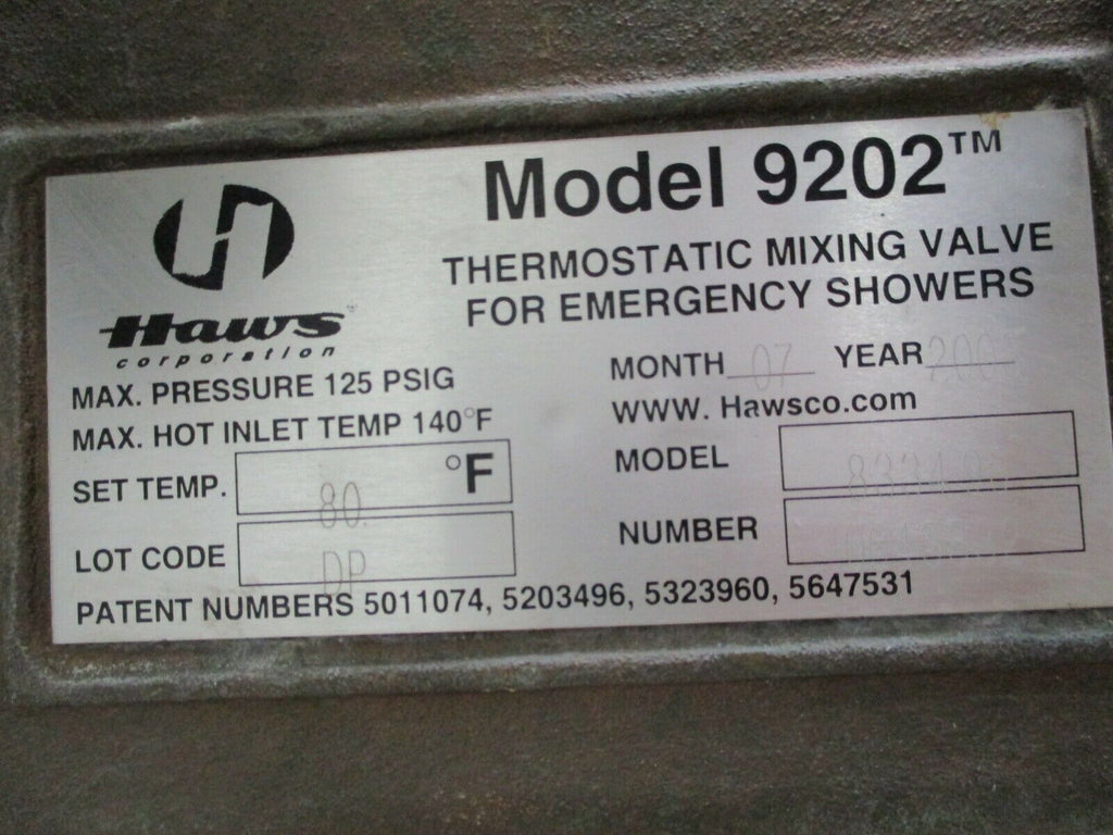 Haws Model 9202 Thermostatic Mixing Valve For Emergency Showers 8334-96 Used