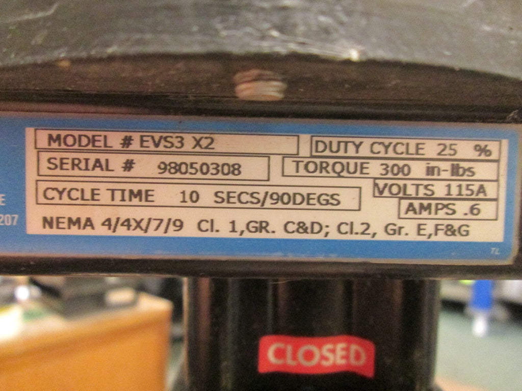 Hayward Actuating Ball Valve EVS3 X2 PVC Body Cycle Time: 10sec/90° 115V 0.6A Condition: UsedBrand: HaywardMPN: EVS3 X2 Hayward Actuating Ball Valve EVS3 X2 PVC Body Cycle Time: 10sec/90° 115V 0.6A Hayward Actuating Ball Valve Part #: EVS3 X2 PVC Body Cycle Time: 10sec / 90° Torque: 300in/lbs115V 0.6A UsedLOC AB9D2-14 Hayward Actuating Ball Valve Part #: EVS3 X2 PVC Body Cycle Time: 10sec / 90° Torque: 300in/lbs 115V 0.6A Uséd LOC AB9D2-14