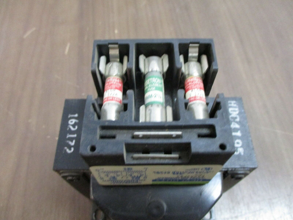Hevi-Duty Control Transformer Part#: E2753PBX 0.275 kVA Pri: 240/480 V Sec: 120 V 50/60 Hz w/ (3) 2 1/2 A Fuses Used Loc: 11G2-44 / 56F5