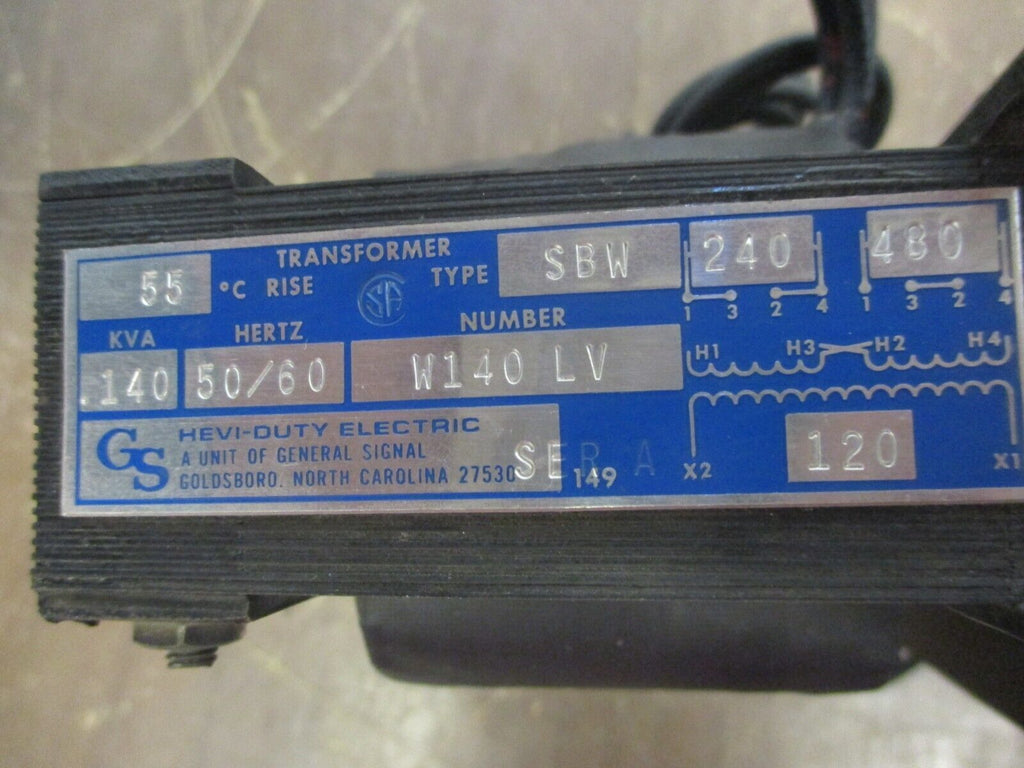 Hevi-Duty Type SBW Transformer W140 LV 0.140KVA Pri:240/480V Sec:120V Used