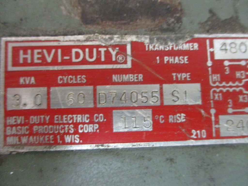 Hevi-Duty Type SI Transformer D74055 3.0kVA Pri: 240/480V Sec: 120/240V 60Hz 1Ph