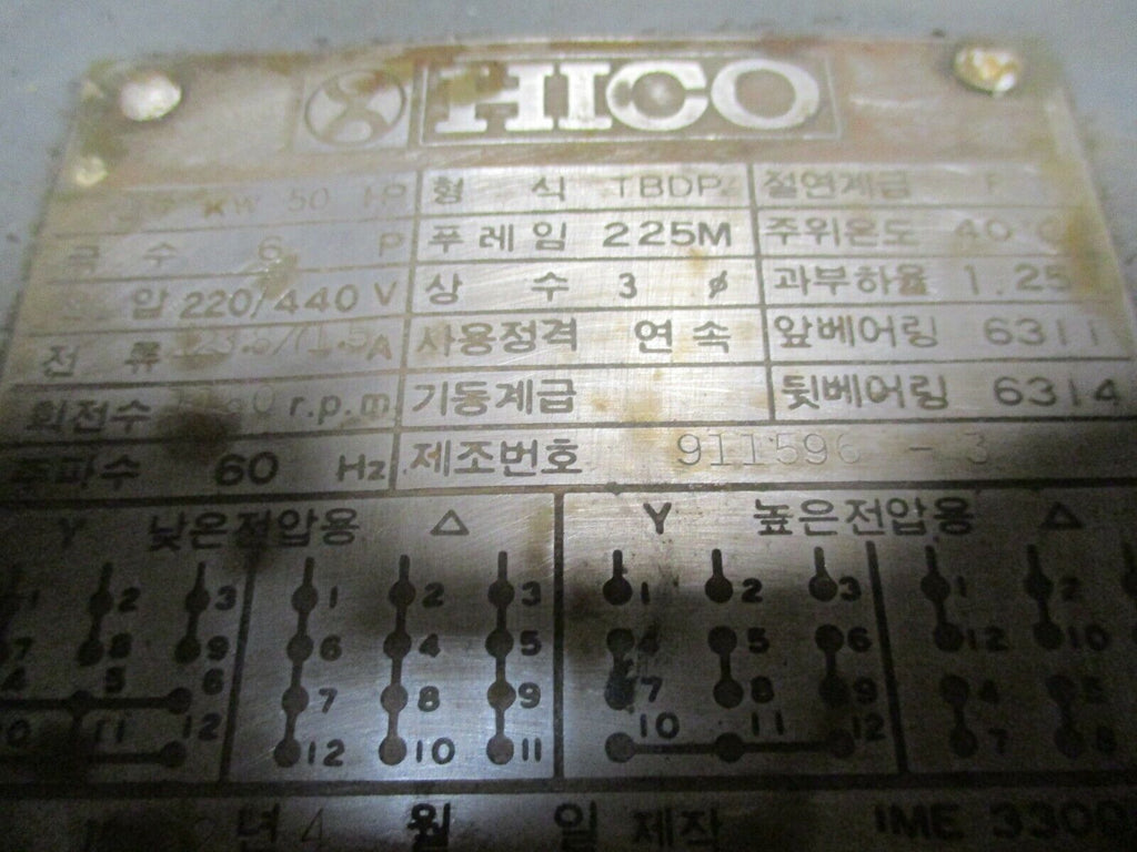 Hico AC Motor 911596-3 50HP 1200RPM 220/440V 123.8/71.5A 3Ph 60Hz Used