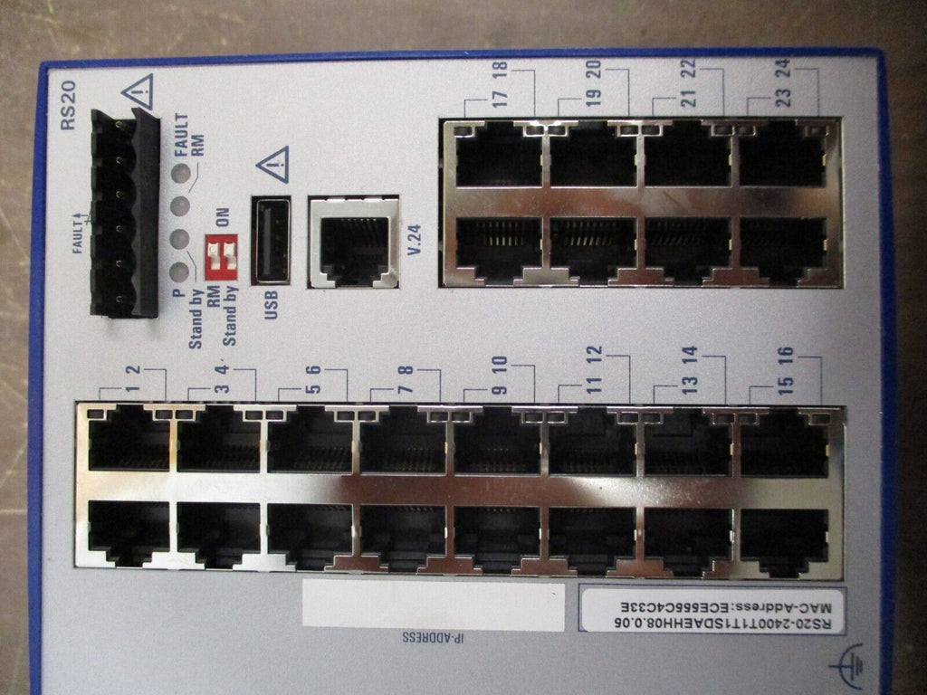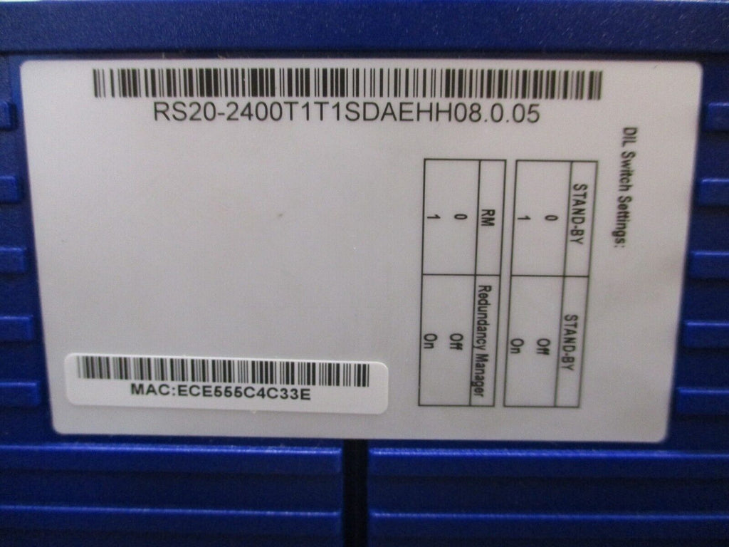 Hirschmann Managed Industrial Ethernet Switch RS20-2400T1T1SDAE SW Rel. 08.0.05 Condition: New – Open boxBrand: HirschmannMPN: RS20-2400T1T1SDAEType: Ethernet Switch Hirschmann Managed Industrial Ethernet Switch RS20-2400T1T1SDAE SW Rel. 08.0.05 Hirschmann Managed Industrial Ethernet Switch Part #: RS20-2400T1T1SDAE SW Rel. 08.0.05 New Surplus Loc: 27A5-1 Hirschmann Managed Industrial Ethernet Switch Part #: RS20-2400T1T1SDAE SW Rel. 08.0.05 New Surplus Loc: 27A5-1