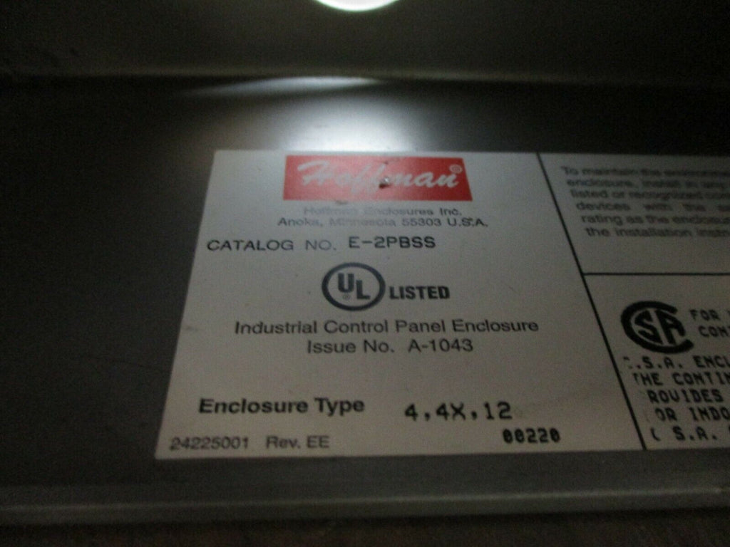 Hoffman Stainless Steel Push Button Station E-2PBSS 2-Position Type 4X Enclosure_x000D_ Condition: UsedMPN: 14C3-61Button Color: RedBrand: Hoffman Hoffman Stainless Steel Push Button Station E-2PBSS 2-Position Type 4X Enclosure Hoffman Stainless Steel Push Button Station Part#: E-2PBSS 2-Position Type 4X Enclosure w/E-Stop w/Pushbutton Used loc: 14C3-61 Hoffman Stainless Steel Push Button Station Part#: E-2PBSS 2-Position Type 4X Enclosure w/E-Stop w/Pushbutton Uséd loc: 14C3-61
