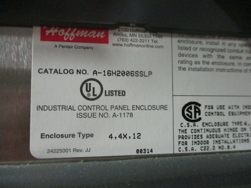 Hoffman Stainless Steel Type 4, 4X, 12 Enclosure A-16H2006SSLP Size: 16x20x6"