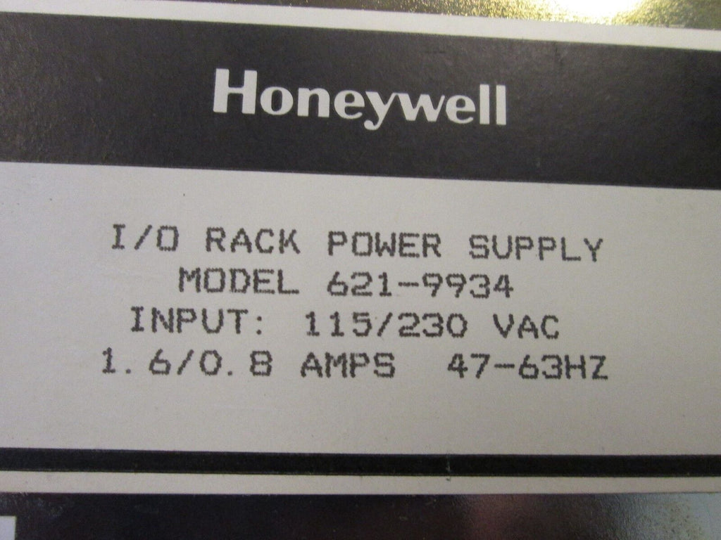 Honeywell I/O Rack Power Supply 621-9934 115/230VAC 1.6/.8A 47-63Hz Used_x000D_ Condition: UsedBrand: HoneywellModel: I/O Rack Power SupplyMPN: 621-9934 Honeywell I/O Rack Power Supply 621-9934 115/230VAC 1.6/.8A 47-63Hz Used Honeywell I/O Rack Power Supply Part # 621-9934 Input: 115/230VAC, 1.6/.8A, 47-63Hz UsedLOC: 17B3-1 Honeywell I/O Rack Power Supply Part # 621-9934 Input: 115/230VAC, 1.6/.8A, 47-63Hz Uséd LOC: 17B3-1