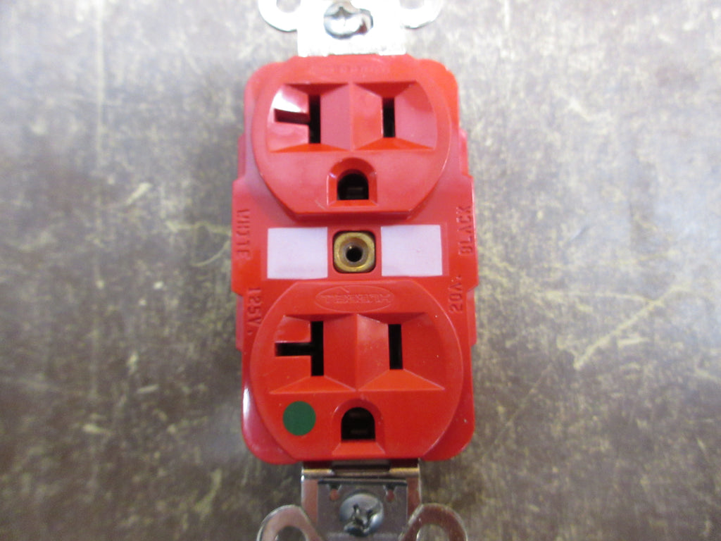 Hubbell Duplex Receptacle Part #: HBL8300R 20A 125A 2P 3W Red Hospital Spec. Grade New Surplus Loc: 59I3-6