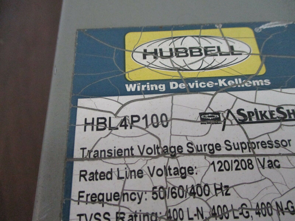Hubbell SpikeShield Surge Suppressor HBL4P100 120/208V 50/60/400Hz Used