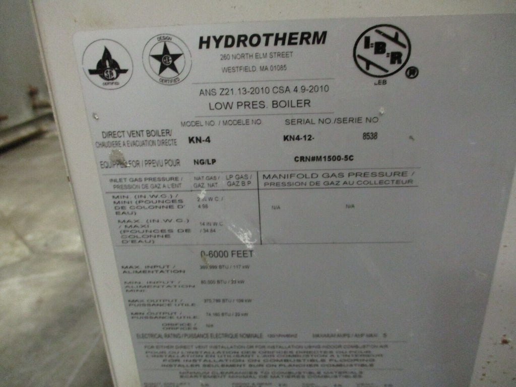 Hydrotherm Low Pressure Cast Iron Boiler KN-4 400,000 BTU Natural Gas 120V 1Ph