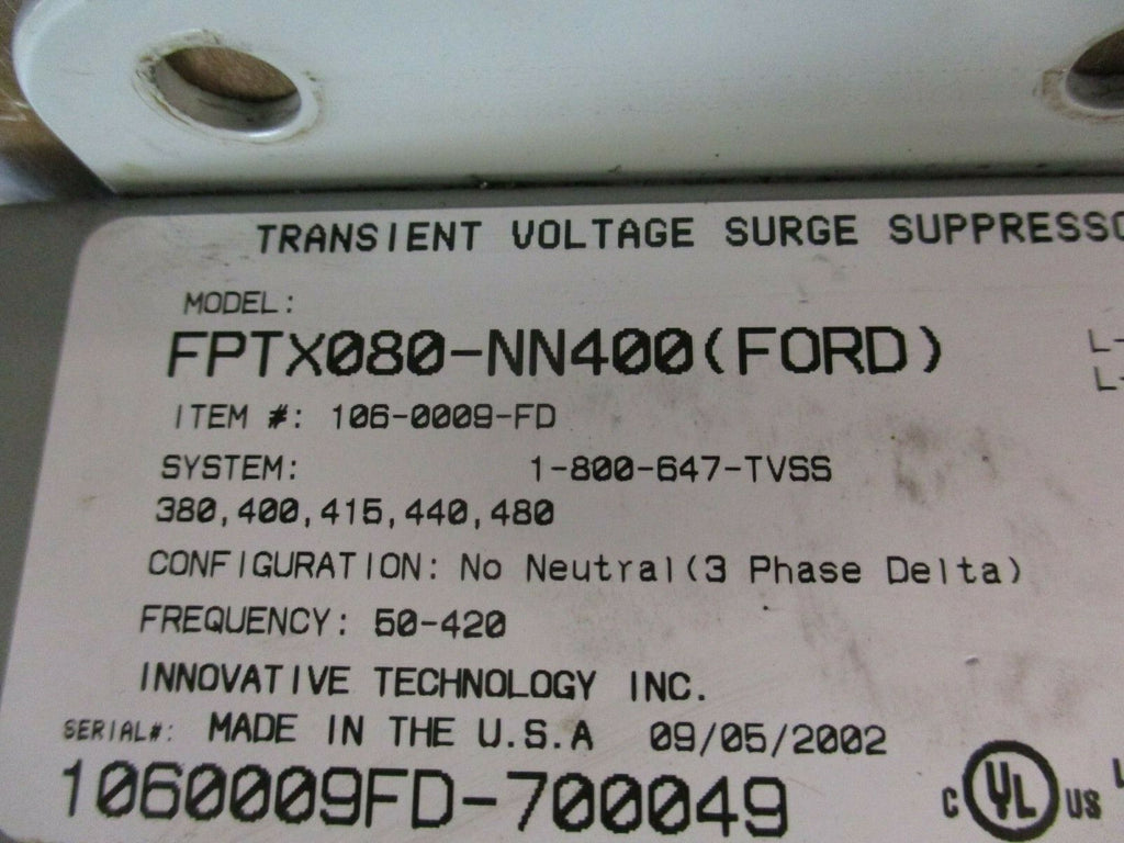 Innovative Technology The IT Protector Surge Suppressor Part#: FPTX080-NN400 System: 380-480 V 50-420 Hz 1500 L-L, L-GUsedLoc: 16B5-17- Part#: FPTX080-NN400