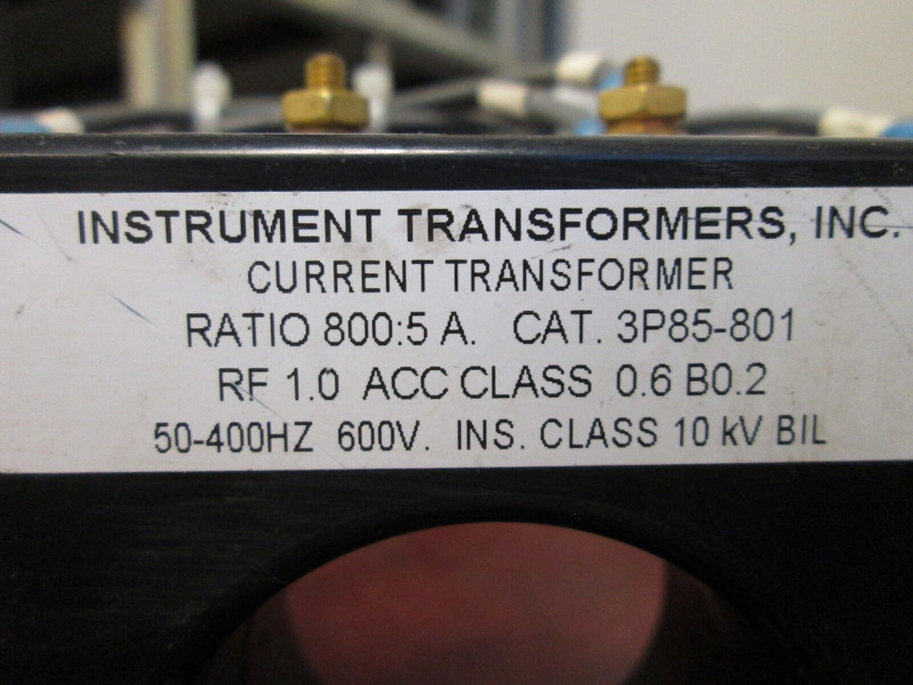 Instrument Transformers Current Transformer 3P85-801 Ratio 800:5A 10KV BIL Used Condition: UsedBrand: Instrument TransformersModel: Current TransformerMPN: 3P85-801 Instrument Transformers Current Transformer 3P85-801 Ratio 800:5A 10KV BIL Used Instrument Transformers Current Transformer Part #: 3P85-801 Ratio 800:5A 10KV BIL 600V50 - 400HzUsedLOC 13G2-19 Instrument Transformers Current Transformer Part #: 3P85-801 Ratio 800:5A 10KV BIL 600V 50 - 400Hz Uséd LOC 13G2-19