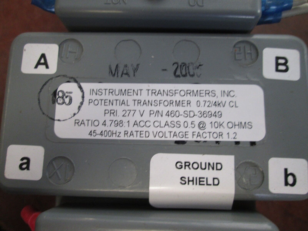 Instrument Transformers Potential Transformer 460-SD-36949 Pri 277V Used Condition: UsedBrand: Instrument TransformersModel: Potential TransformerMPN: 460-SD-36949 Instrument Transformers Potential Transformer 460-SD-36949 Pri 277V Used Instrument Transformers Potential Transformer Part #: 460-SD-36949 Pri 277V Ratio 4.798:145-400HzUsedLOC 14G3-4 Instrument Transformers Potential Transformer Part #: 460-SD-36949 Pri 277V Ratio 4.798:1 45-400Hz Uséd LOC 14G3-4
