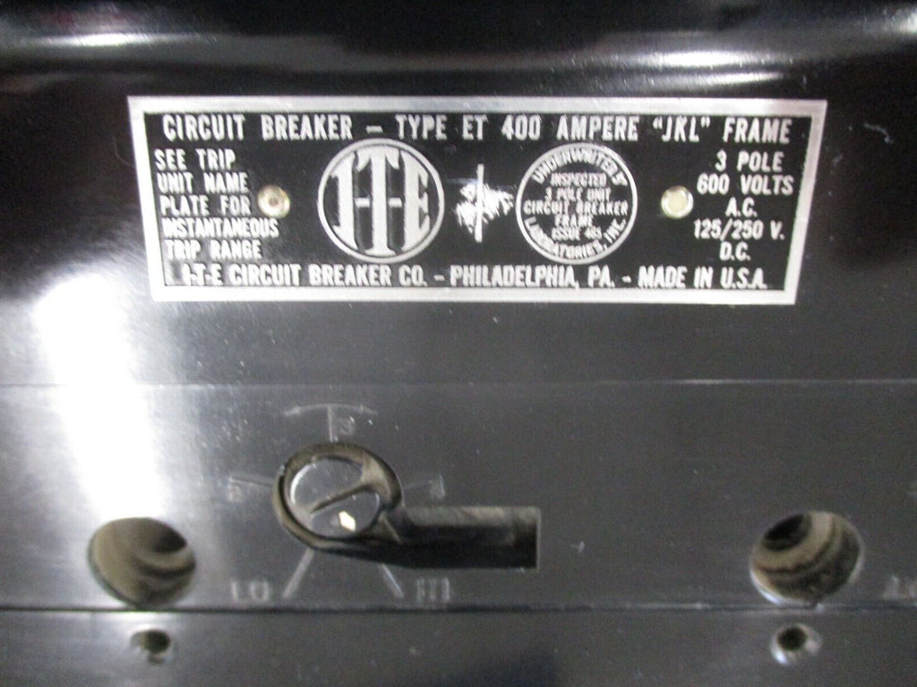 ITE Circuit Breaker JKL2B400 400A 600V 3P Used ITE Circuit Breaker JKL2B400 400A 600V 3P UsedLOC AB11-7528 / AB40V2 ITE Circuit Breaker JKL2B400 400A 600V 3P UsédLOC AB11-7528 / AB40V2