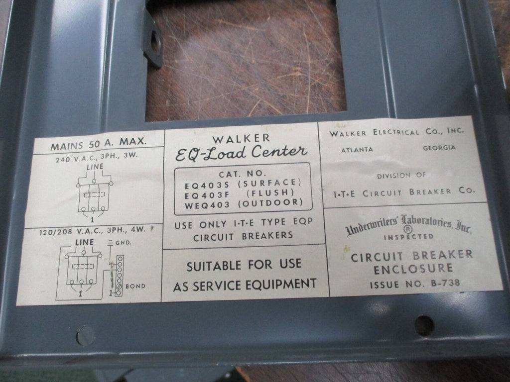 ITE EQ Load Center Breaker Enclosure 100A For Type QP Breakers 120/240V Used_x000D_ Condition: UsedBrand: ITEMPN: 100A ITE EQ Load Center Breaker Enclosure 100A For Type QP Breakers 120/240V Used ITE EQ Load Center Breaker Enclosure For Type QP Breakers 100A120/240V UsedLOC AB5K3-2 ITE EQ Load Center Breaker Enclosure For Type QP Breakers 100A 120/240V Uséd LOC AB5K3-2