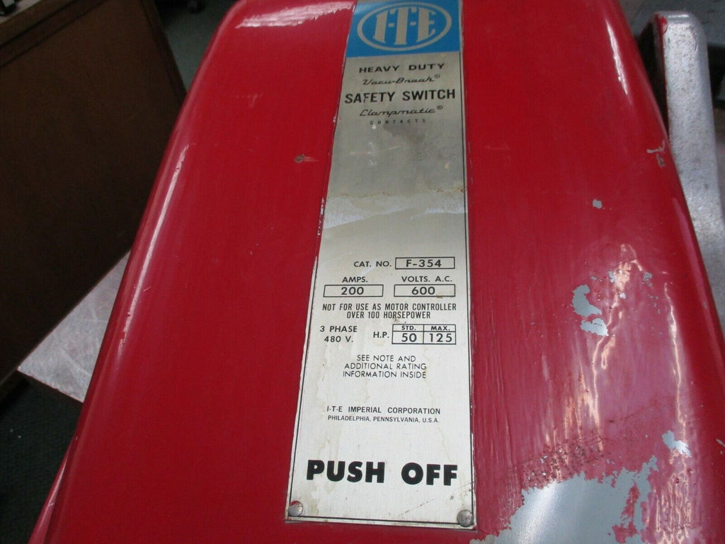 ITE Fusible Safety Switch / Disconnect F-354 200A 600V 3Ph Use...