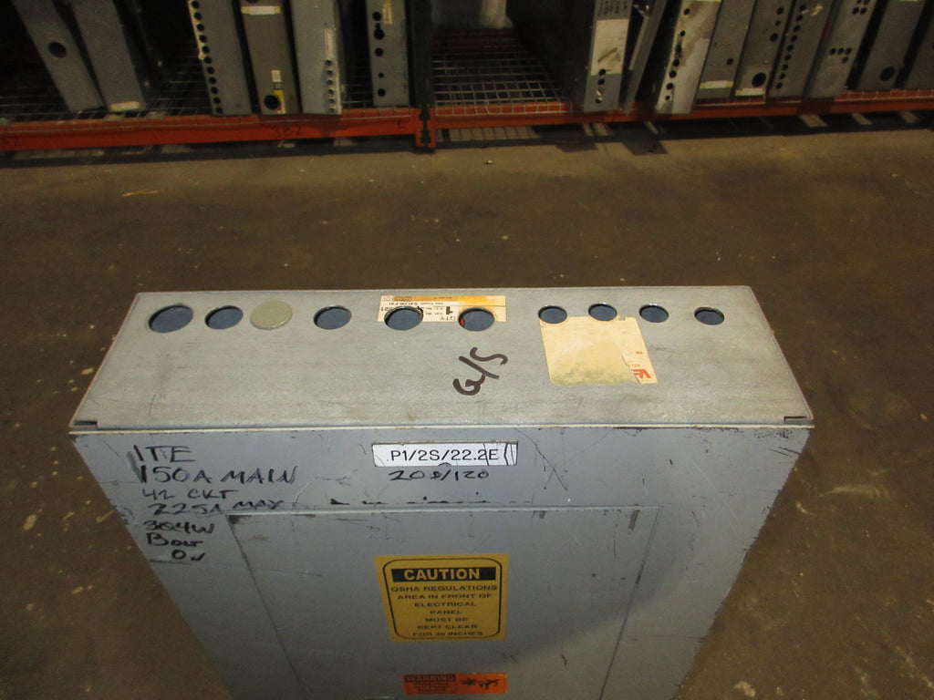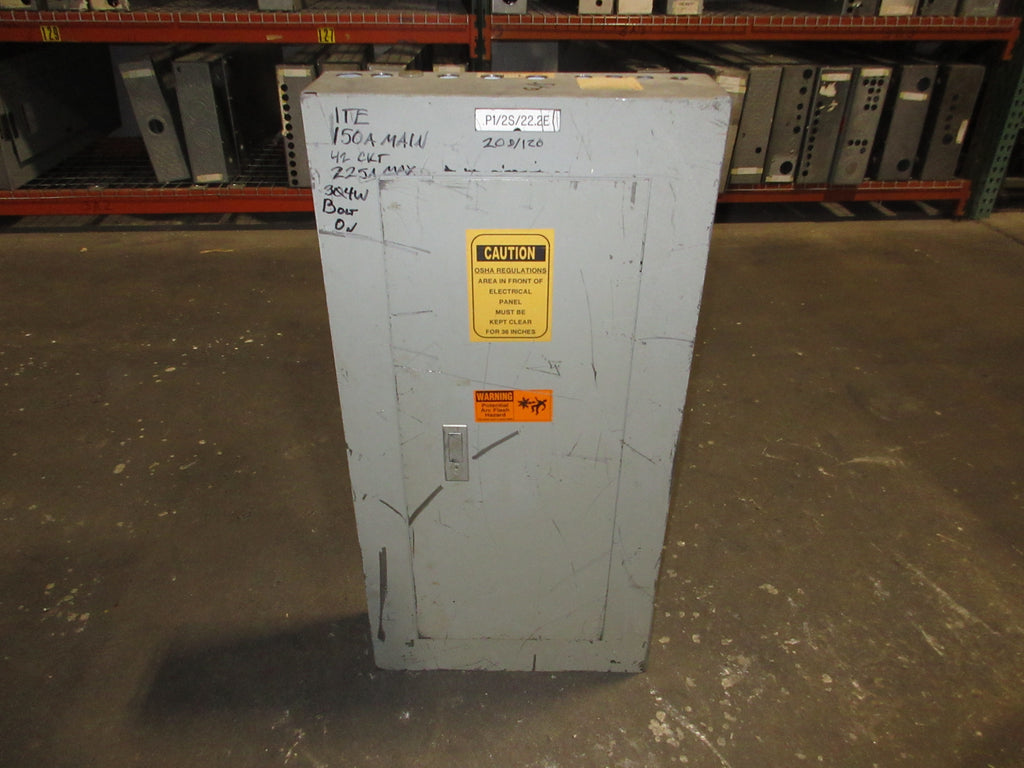 ITE Main Breaker Circuit Breaker Panel Part #: UBA42-24B 225A Max 208Y/120V 3Ph 4W 150A Main 42-Slot Breakers: (2) 60A 2P (2) 20A 2P (28) 20A 1P *Missing (1) Door Hinge* *Missing (1) Cover Latch* Used Loc: AB20P3-6