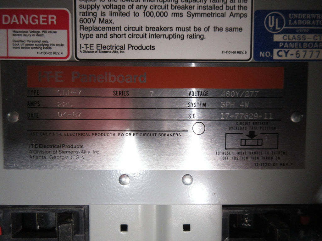ITE Main Lug Breaker Panel Part #: CDP-7 225A Max 480Y/277V...