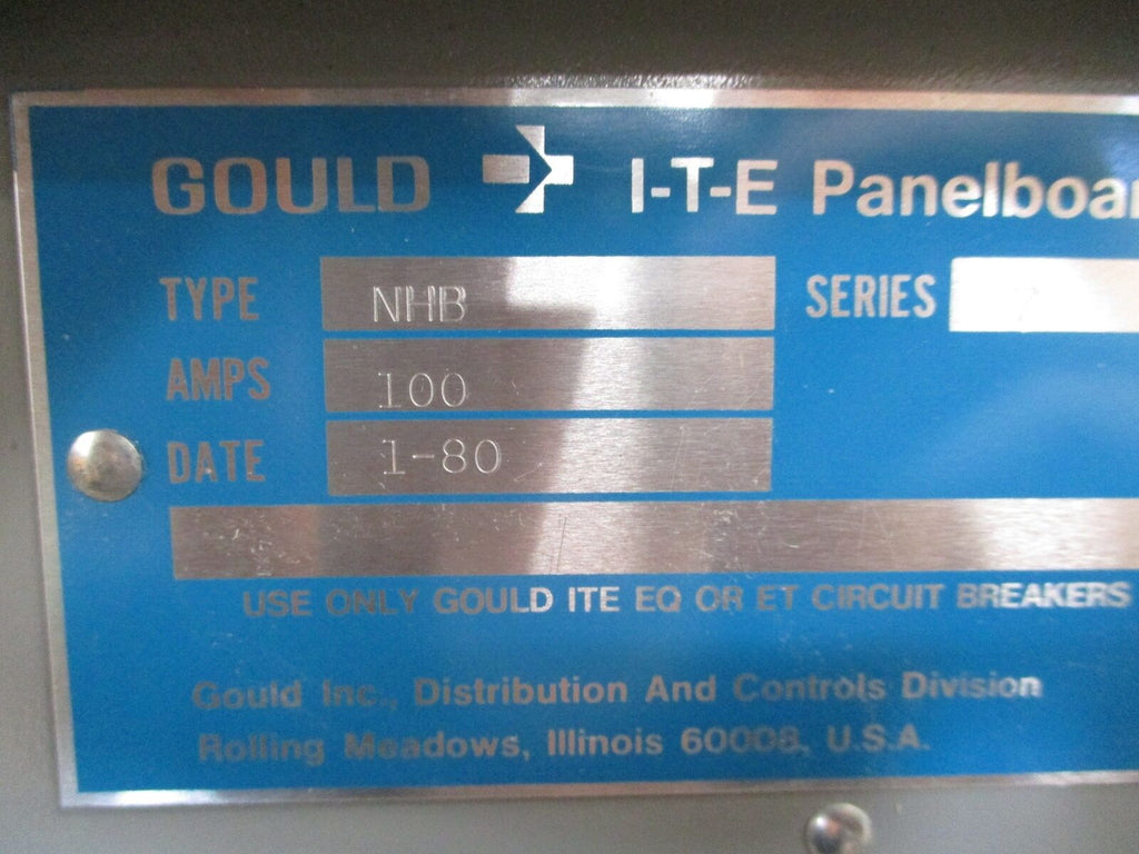 ITE Main Lug Breaker Panel NHB 100A Max 277/480V 3Ph 4W 18-Slot Used_x000D_ ITE Main Lug Breaker Panel Part #: NHB 100 A Max 277/480 V 3Ph 4W 18-Slot Breakers: (9) 20A 1P Used Loc: AB20P4-1